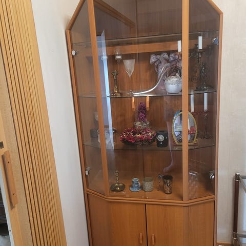 Kaunis ja ehjä lasivitriinikaappi. Nouto Maskusta.
