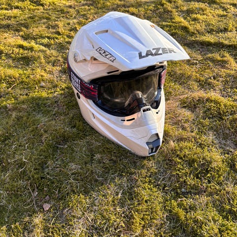 Myydään kuvissa näkyvä M kokoa oleva crossi kypärä, visiiri puuttuu, ajolasit mukaan.