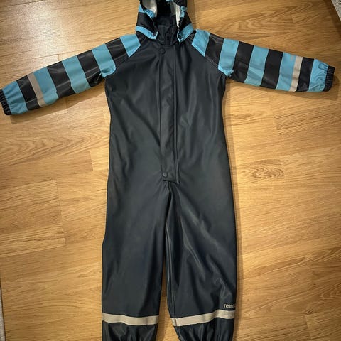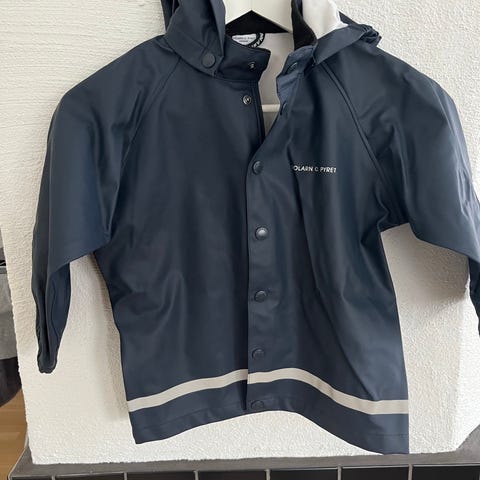 Myynnissä myös tummansininen todella siisti sadetakki 98/104.