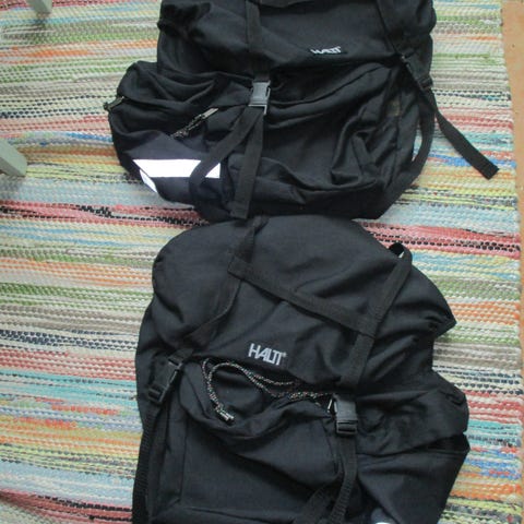 Vähän käytetyt Haltin pyörälaukut, helppo kiinnitää tavaratelineeseen.