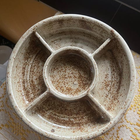 Uusi käyttämätön tarjoiluvati ja tarjoilukulho.