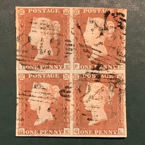 Iso-Britannia 1841 - Penny Blue ja pari, joissa on kirjaimet MD ja ME - Michel 4