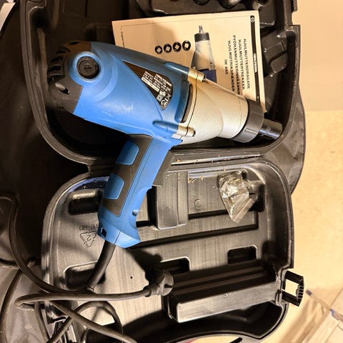 Cocraft sähkökäyttöinen mutterinväännin. Johdollinen malli. Soveltuu esimerkiksi pyöränpulttien ja muiden pultti- ja mutteriliitosten kiristämiseen ja avaamiseen.