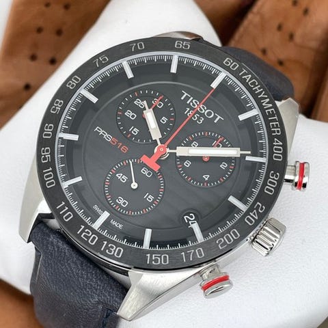 Tissot - PRS 516 Chronograph - T100.417.36.051.00Kotelo: ruostumaton teräs / kultausKoneisto: Sveitsissä valmistettu kvartsikoneisto Kellotaulu: musta Ø: 42 mm (ilman koron)Lasi: safiirilasiRanneke: musta nahkalainen Tissot-rannekeRanteen ympärysmitta: n. 21 cmKunto: Uudiskunto!Takuu: 1 vuosi "de Horlogemeesters"Toimitus: mukana alkuperäinen laatikko + asiakirjat (allekirjoittamatta) + aitoustodistus "de Horlogemeesters."Rekisteröity ja vakuutettu toimitus (DHL Express).