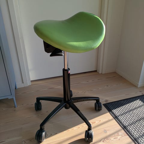 Vihreä Salli One-mallinen satulatuoli. Oikein hyvässä kunnossa. Nouto Merihaasta 🙂
