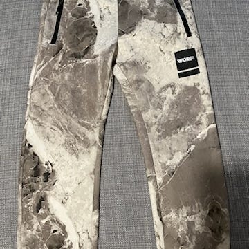 Housut on valmistettu 95 % luomupuuvillasta ja niissä on kirjava, mammutti-aiheinen kuosi. Unisex-malli, jossa joustava vyötärö ja lahkeensuut resoreilla.