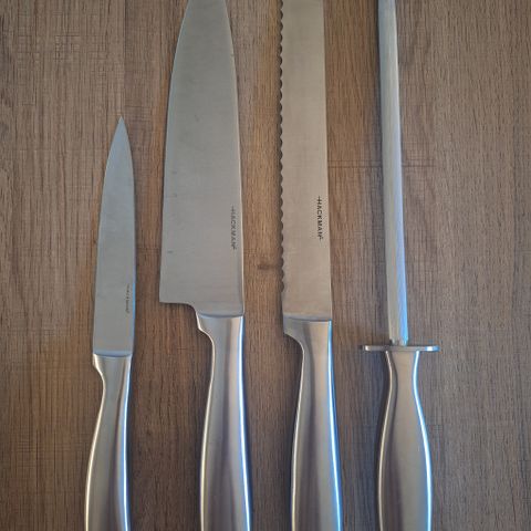 Hackman veitsisetti, jossa kokkiveitsi ja paistihaarukka. Molemmat osat ovat ruostumatonta terästä ja toimitetaan alkuperäisessä rasiassa. Setti soveltuu yleiseen ruoanlaittoon, erityisesti lihan leikkaamiseen ja käsittelyyn keittiössä.