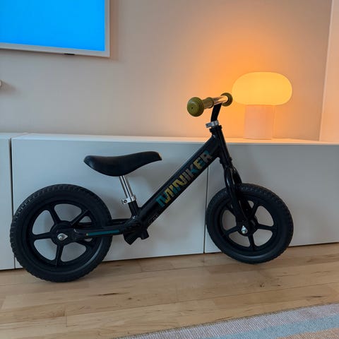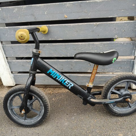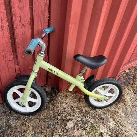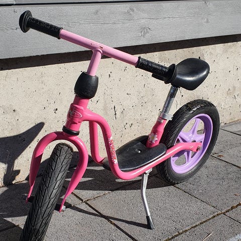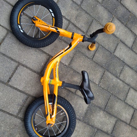 Lasten potkupyörä, jossa 12 tuuman renkaat. Rungon pääväri on valkoinen ja yksityiskohdat sinisen ja keltaisen sävyissä. Pyörässä on matala runko helpottamaan kyytiin nousua ja pois laskeutumista. Sopii tasapainon harjoitteluun ja pyöräilyn opetteluun pienille lapsille.