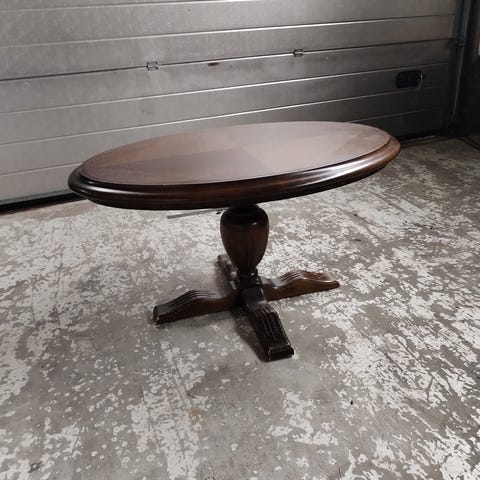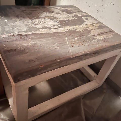 Puinen sohvapöytä hyllyllä.
