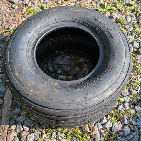 Sähköskootterin Dagsmark 225/40-10 rengas, väri musta. Rengas sopii 10 tuuman vanteelle, leveys 225 mm ja profiili 40. Kuvioitu pintamalli, tarkoitettu ajoneuvokäyttöön koon ja merkintöjen mukaisesti. Hinta molemmille.