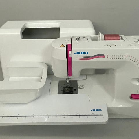 Ompelukone varaosiksi tai korjattavaksi. Havaitut viat: paininjalan johto osittain poikki. Näytössä kosketus häikkää. Koneen muodostamassa tikissä vikaa.
