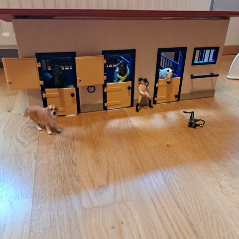 Myydään hyväkuntoinen Schleich hevostalli + hevostraileri autolla. Nouto Torpparinmäestä.