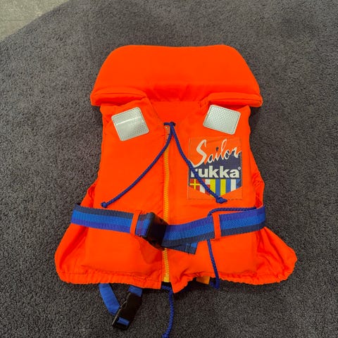 Lasten kelluntaliivi 30-50 kokoiselle. Käännettävä malli, jota voi käyttää joko sinisenä tai punaisena. Uusi, ei ehtinytkään käyttöön viime kesänä.