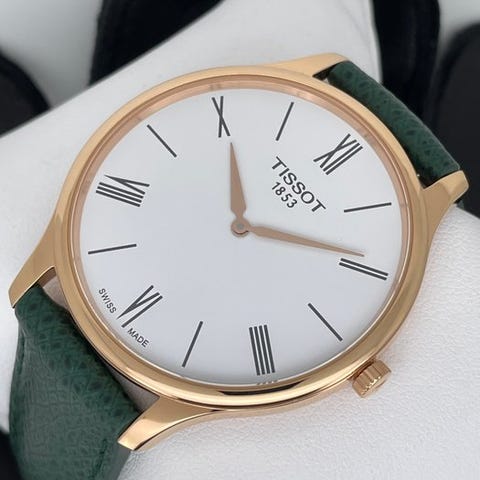 Upea herraherkullinen Mathey Tissot, malli H411AV. Kellon voimanlähteenä on kvartsi-koneisto, ja siinä on päivämääränäyttö klo 6.00. Hyvin luettava värillisen taustan ja hopeanväristen yksityiskohtien ansiosta. Huomiota herättävä ulkonäkö sopivalla värisellä nahkarullakellonrannekkeella.Kellon mukana toimitetaan näytetyt (tyhjä) tarvikkeet.Kellon tiedot:Koneisto: QuartzKotelon materiaali: teräsLäpäisar: noin 42 mm verroksellaHihnan pituus: noin 21 cmValmistusvuosi: 2024Lähetetään vakuutetusti.Kuvat ovat osa kuvausta.