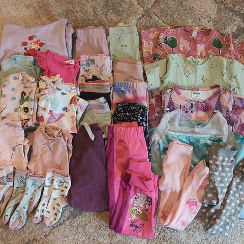 Hyväkuntoisia käyttövaatteita koossa 98. Paketti sisältää