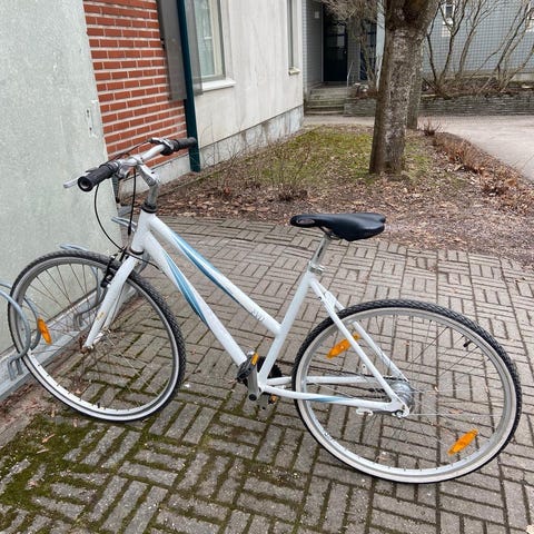 Pyörä on huollettu, väri on kirkas eikä siinä ole haalistumia tai merkittäviä naarmuja. Tästä luotettava ja tyylikäs pyörä kaupunki- tai työmatka-ajoon!