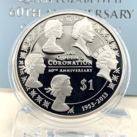 Cookinsaaret. Silver antique finish .999 colored 1 oz -5 Dollars - Elizabeth II