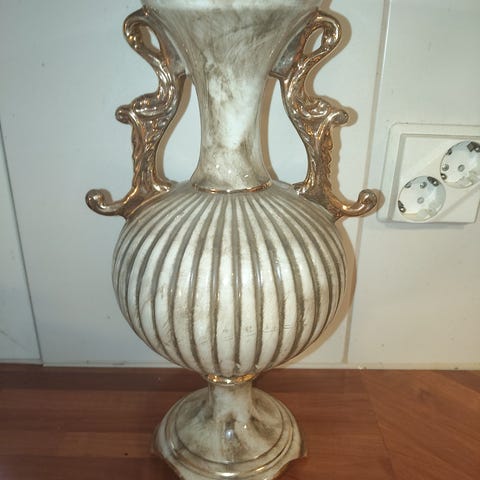 Italialaisen Fratelli Fanciullaccin tekemä keraaminen vati/kulho 1960 luvulta, jossa valkoisella pohjalla upea kultainen kuviointi. Halk 22cm ja korkeus 6cm. Vati on hienossa kunnossa.