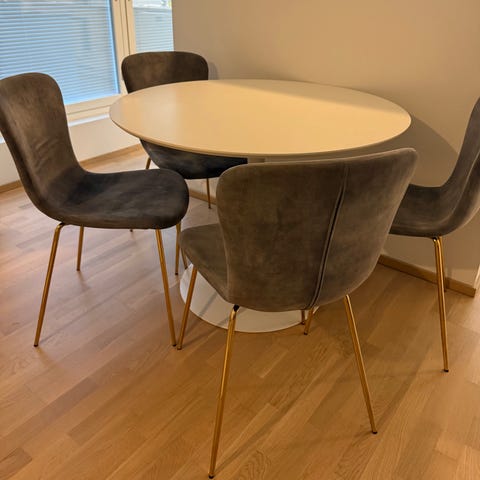 Ruokapöytä ja 4 kpl tuolit valkoinen. MYYDÄÄN YHDESSÄ/ERIKSEEN.
