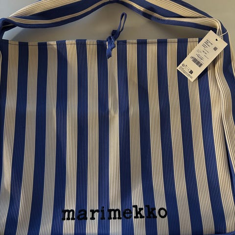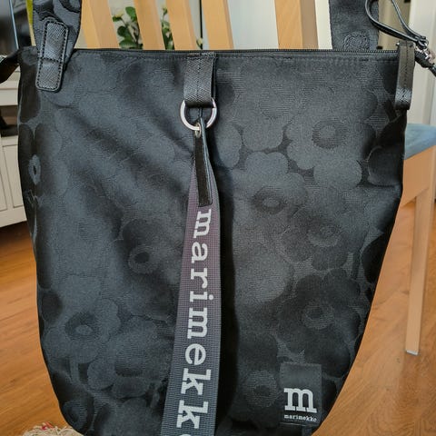 Olkalaukussa on leveä kantohihna ja vetoketjusuljenta.