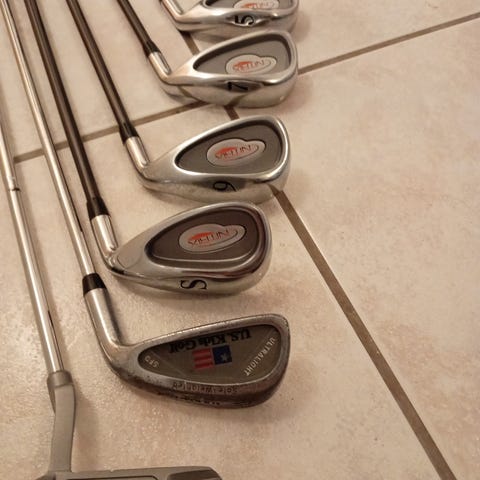 Lasten USKG rautamailat 6 ja 7, sekä putteri ja bägi. Hyvässä kunnossa.