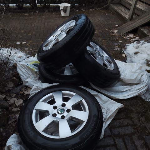 195/65R15 kesärenkaat 3kpl Alkuperäiset Skoda Octavian 2011vm peltivanteet. Pintaa renkaissa 3mm. Vain nouto.
