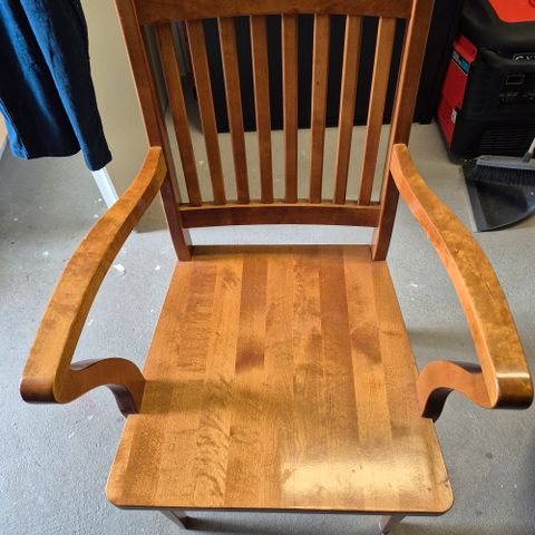 Björknäs tuoli käsinojilla, täyskoivua. Jonkin verran käytön jälkeä, ks.kuvat