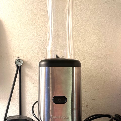 Melissa smoothieblender vihreä. Pöytämallinen pieni tehosekoitin, jossa irrotettava vihreä juomapullo ja teräyksikkö kannen alla. Soveltuu esimerkiksi smoothieiden ja juomasekoitusten valmistukseen. Johdollinen sähkökäyttö, virtapainike laitteen etuosassa. Runko ja pullo muovia, teräosa metallia.