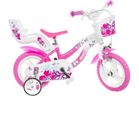 Pyörässä 12 tuumaiset renkaat. Ollut käytössä kahdella perheen lapsella. Sopii ensimmäiseksi polkupyöräksi.
