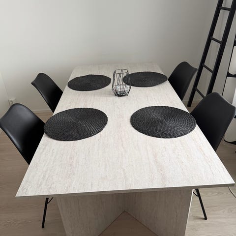 Todella hyvä kuntoinen pöytä, tuolit tarvitsee pesun muuten hyvässä kunnossa.