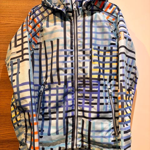 Hyväkuntoinen Reiman takki koossa 134 cm. Pitää vettä ja tuulta. Mukavan notkea takki päällä, meillä oli suosikki kunnes jäi pieneksi.