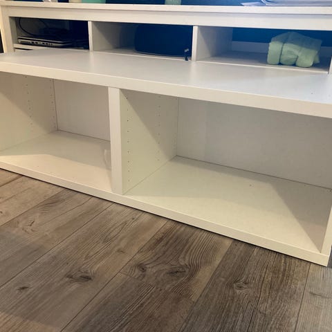 Myydään tarpeettomana hyväkuntoinen valkea tv-taso hiekanvärisillä graniittikuvioisilla ovilla. Ovia voisi hieman kiristää, mutta muuten on virheetön. Nouto Paloheinästä.