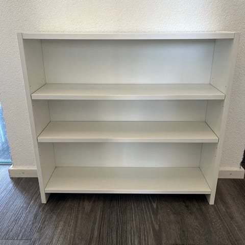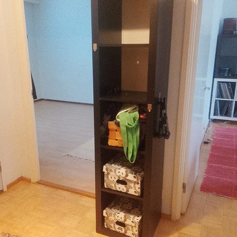 Uusi hyllykkö, virheetön kunto. Tukevasti pysyy pystyssä. Ei sopinutkaan suunnitellulle paikalle. Lemmikitön koti.