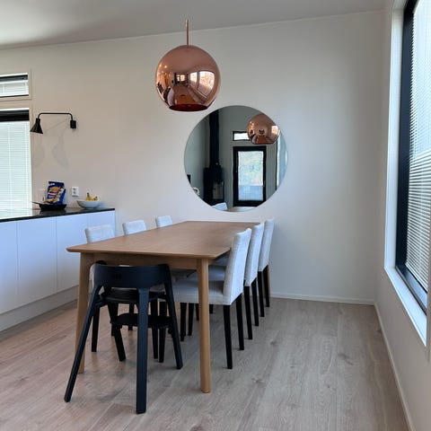 A very good white dining table with 4 pcs Pohjanmaan brand chairs. Both table and chairs are in very good condition. Strong and sturdy. No wobbly, No crack, No damage, No stains and No paint issue. Of course there are some marks of usage which is very normal.