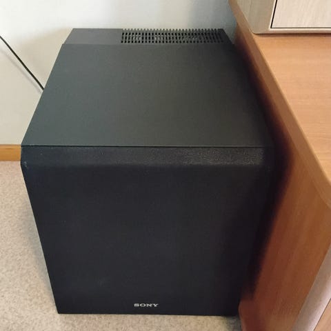Audio Pron kaiuttimia. Ehjiä ja toimivia, ihan siistissä käytetyssä kunnossa. Subbarin pianolakattu pinta tosin on todella herkkä naarmuuntumaan ja se näkyy.