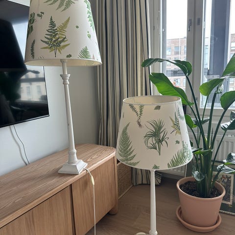 Lampunjalka, lampun varjostimen saa tarvittaessa mukaan. Ilmoituksessa myydään lampun jalkaa.