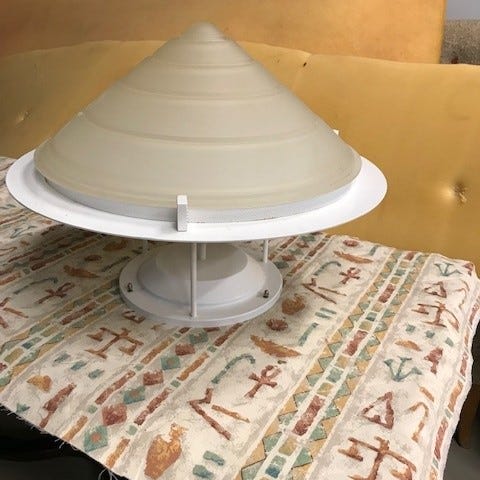 Kattoon tai seinään asennettava valaisin, peltirunkoinen ja opaalilasikuvulla.