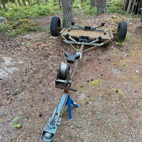 Itse tehty rantatraileri ja ehjä lasikuitu kalaustusvene 370cm x 140cm ehjä. Kahdet airon paikat ja kolme paikkaa vavoille. Etsii uutta kotia muuton takia.
