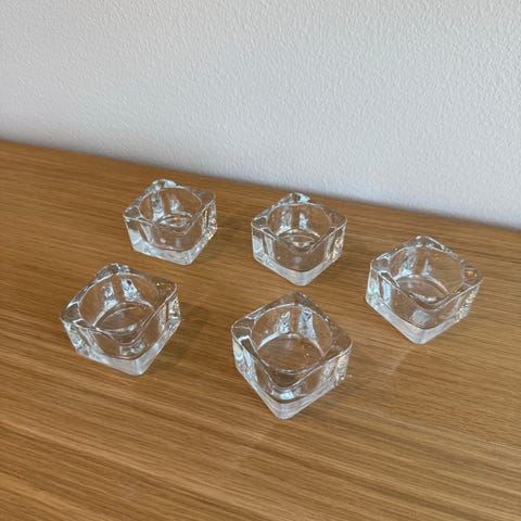 Erilaisia tuikkukuppeja ja kaksi H&M Home polttamatonta hajusteetonta kynttilää lasisissa kupeissa
