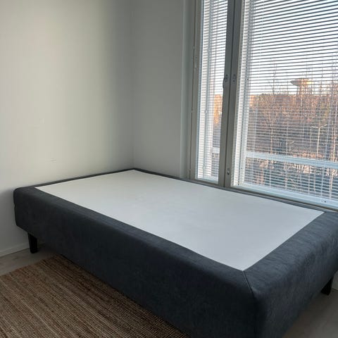 Myydään vähällä käytöllä (vierassänky) ollut Askon Pinja-niminen 120 cm runkopatja 23 cm jaloilla. Verhoilu tummanharmaa, jalat pyöreät ja metallin väriset. Hyvässä kunnossa! Ostettu 4 v. sitten.
