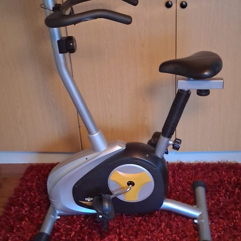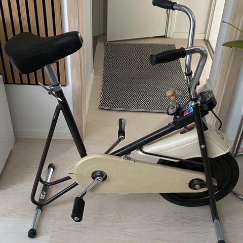 Kettler kuntopyörä sisäharjoitteluun. Laitteessa on ohjaustangon edessä näyttöpaneeli, josta voi seurata harjoittelun perusarvoja, kuten aikaa, matkaa ja nopeutta. Näytön alla on painikkeet tilan valintaan, asetusten säätöön, palautumistestin käyttöön sekä laitteen nollaamiseen. Pyörässä on säädettävä satula ja polkimet hihnoilla. Soveltuu kotikäyttöön kuntoiluun ja peruskestävyysharjoitteluun.Istuin kärsinyt hivenen, ei haittaa käyttöä.