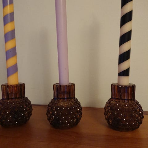 Iso kynttilänjalka neljälle tuikulle tai tuikun kokoiselle kynttilälle. Veistoksellinen ja painava. Korkeus 29 cm.