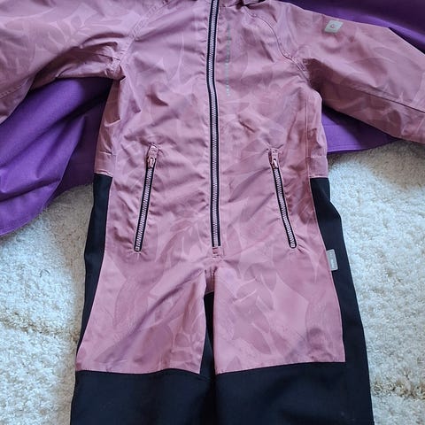 Muuten tosi hyvässä kunnossa oleva reiman haalari mutta toisen haalarin sisäpuolella olevan henkselin kohdalta vähän ratkennut. Ei ole haalarissa itsessään reikää vaan siinä henkselin kohdalla verkkovuiressa.ei haitannutmeillä käyttöä mitenkään. Koko 116cm. Koiratalous