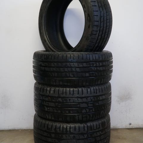 Vain 2kpl. Ehjät mutta keskeltä jo aika kuluneet, reunoilla vielä hyvin pintaa. Paistot -16, kumi pehmeää. Menee vielä yhden kesän tai sit vaikka polttokumeiksi.