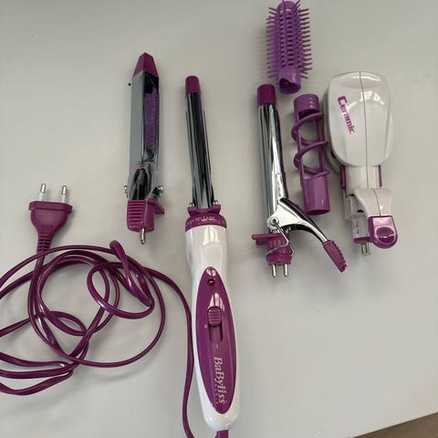 BaByliss kiharrin, jossa pitkä johto ja suljettava kiharruskammio hiusten automaattista kiharrusta varten.