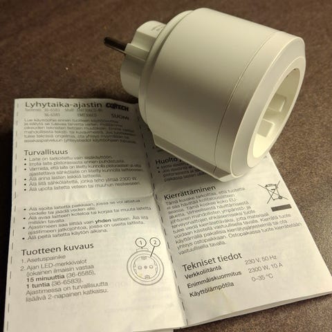Brennenstuhl miniajastin 24h sisäkäyttöön. Mekaaninen pistorasia-ajastin, jossa 24 tunnin kello ja säädettävät kytkentäjaksot. Tarkoitettu sähkölaitteiden, kuten valaisimien tai muiden kodin laitteiden, ajastettuun päälle- ja poiskytkentään sisätiloissa. Liitetään suoraan maadoitettuun pistorasiaan, laite kytketään ajastimen pistorasiaan. Mallinumero 5223.