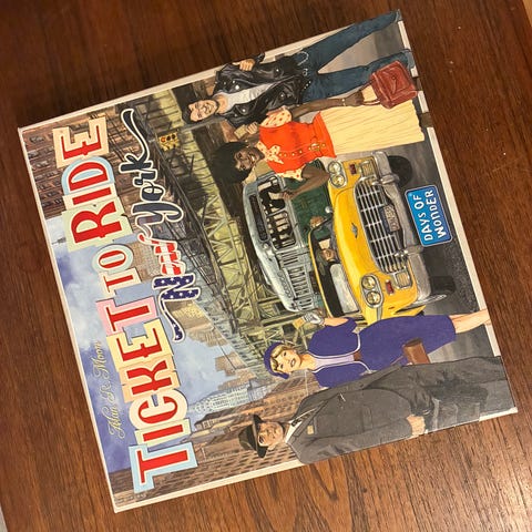 Taxi Challenge New York lautapeli. Pelissä pelaajat toimivat taksikuskeina New Yorkin kaduilla ja keräävät matkustajia sekä rahaa.