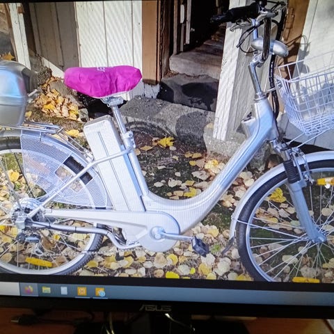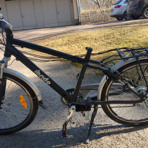 Kuvissa näkyvä sähköpyörä. Alunperin Tunturi Elina 26" 3-vaihteinen Shimano, mutta isäni rakensi siitä Greencyclen muutossarjalla sähköpyörän. Isän kuoltua olin näköjään huolimaton ja minulla ei ole tallessa akunirrotuslukon avainta, mutta akun lataus onnistuu yhtä hyvin akun ollessa rungossa kiinni. Muistaakseni Bosch akku.