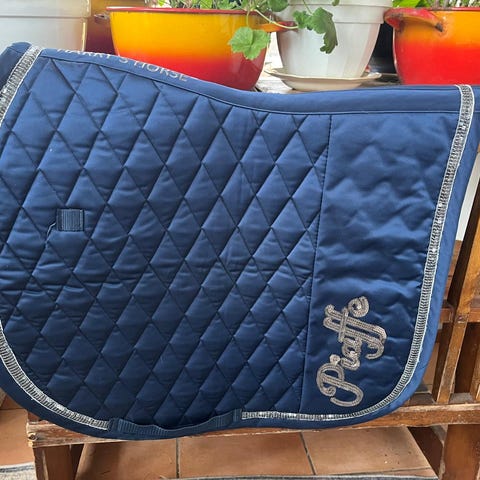 Tästä upea kouluhuopa seuraavalle. Ihana barokki tyylinen, mutta perinteisellä leikkauksella. Vähän käytetty, muutoin kunnossa mutta toisella puolella jotain pölyä tai kulumaa (?)satulan siiven kohdalla.