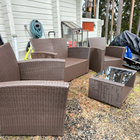 Myydään siisti mattoteline. Yläosan saa linkkuun kuljetusta varten. Nouto Litmaselta.